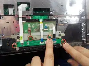 Удалите винты вокруг области, которую ранее закрывала клавиатура, как показано красными кружками.