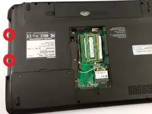 Удалите два винта, которые были скрыты оптическим приводом, как показано на второй фотографии.