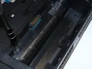 Удалите ещё 2 винта (9 мм), отмеченные буквой «A», в отсеке аккумулятора с помощью крестовой отвертки PH1.