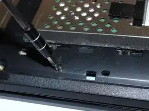 Снимите крышку оптического привода с помощью монтажного инструмента.