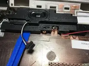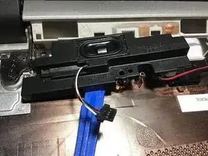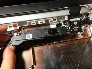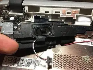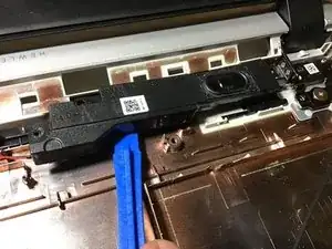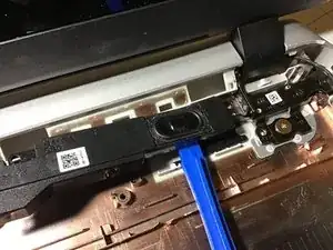 Используйте пластиковый медиатор для поддевания левого динамика и извлеките его из посадочного места.