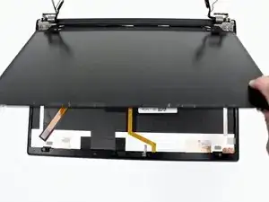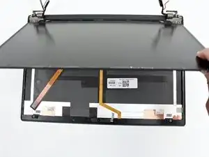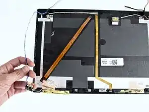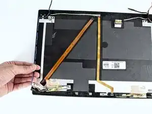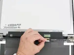 Панель всё ещё соединена с устройством кабелем ЖК‑дисплея, поэтому будьте осторожны, чтобы не порвать разъём при переворачивании.