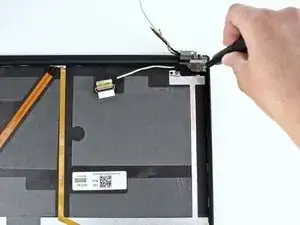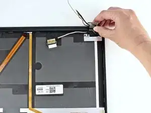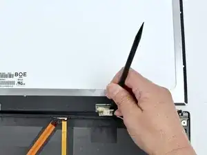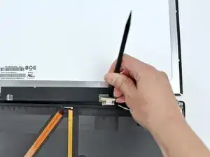 С помощью лопатки разблокируйте кабель ЖК‑дисплея.