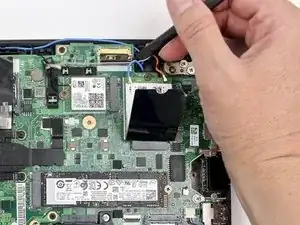 С помощью лопатки отключите кабель ЖК‑дисплея от материнской платы.