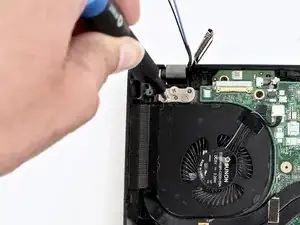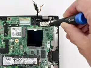 Используйте крестовую отвертку PH #1, чтобы выкрутить два винта 2,8 мм из шарнира в левом верхнем углу.