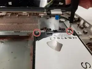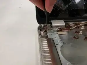 Удалите винты Phillips #0 длиной 6,6 мм, которые крепят экран к правой стороне корпуса.