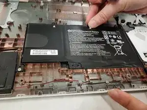 После извлечения всех трёх винтов Phillips #0 длиной 4 мм поднимите аккумулятор и выньте его из корпуса.