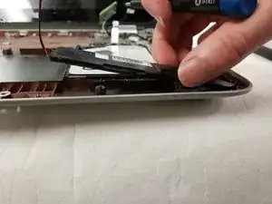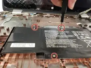 Удалите три винта Phillips #0 длиной 4 мм, которые крепят аккумулятор к корпусу.