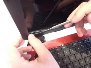 Возьмите маленькую металлическую лопатку и аккуратно отодвиньте наклейку, удерживающую экран на месте.