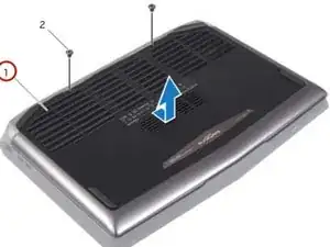 Удалите винты, которые фиксируют крышку основания к корпусу компьютера.