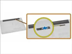 Сдвиньте фиксатор наружу, чтобы разблокировать батарею.