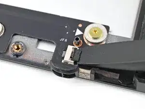 Используйте плоский наконечник отвертки Framework или чистый ноготь, чтобы приподнять и разблокировать фиксирующую защёлку правого ZIF-разъёма вентилятора ZIF connector.