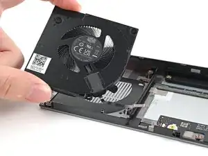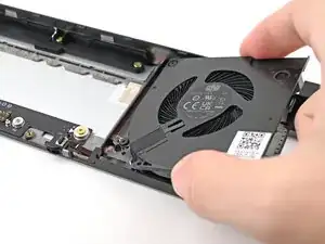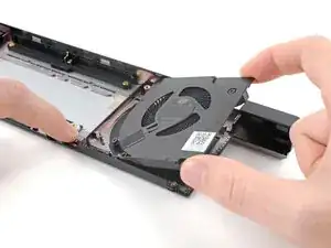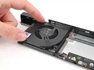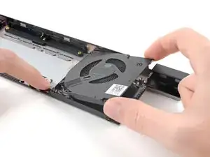 Другой рукой вытащите вентилятор из посадочного места, пропуская кабель через его паз.