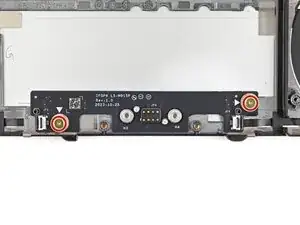 Используйте отвертку Framework, чтобы отвинтить два винта длиной 3,6 мм, закрепляющих плату вентилятора в оболочке расширительного отсека.
