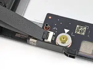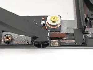 Используйте плоский наконечник отвертки Framework или чистый ноготь, чтобы приподнять и разблокировать фиксирующую защёлку левого ZIF-разъёма вентилятора.