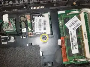 Удалите жесткий диск и единственный скрытый винт M2.5x5 под ним. Также удалите разъем, который соединяет SATA с материнской платой.