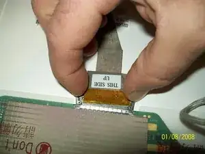 Также сейчас хорошее время, чтобы заменить инвертор LCD, который расположен внизу экрана. Он крепится одним винтом. Затем есть два кабеля, которые подключаются к инвертору.