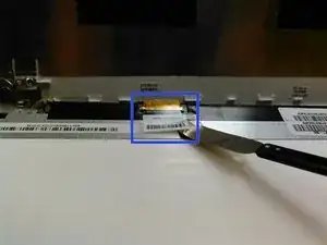 Выделенная область приклеена к задней части дисплея. Подденьте, чтобы освободить ее.