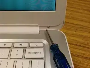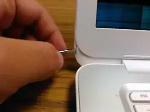Подденьте нейлоновые крышки в нижнем левом и правом углах дисплея, чтобы открыть два винта с Phillips.