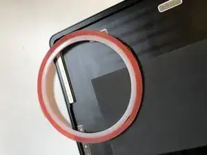 Снимите пластиковый слой поверх клея и установите экран в корпус. Надавите внизу, чтобы экран сел правильно.