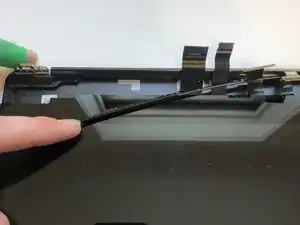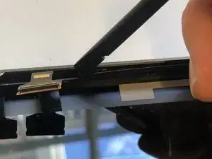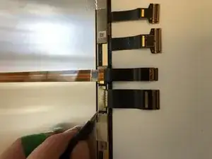 Подогрейте нижнюю часть дисплея и горизонтально потяните экран наружу. Старайтесь сохранить нижний клей нетронутым, он пригодится позже.