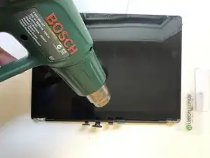Положите дисплей на нагревательную подложку, соблюдая осторожность с разъёмами. Можно также использовать тепловой фен.
