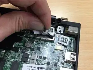 Чтобы отделить шасси chromebook от LCD‑сборки, потяните шасси вверх, удерживая LCD‑сборку прижатой к столу. Это заставит оба шарнира подняться, что создаст достаточно пространства для отделения шасси от шарнирных соединений LCD‑сборки. (См. видео)