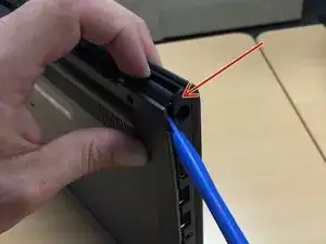 После удаления всех 7 винтов можно начать разъединять заднюю крышку пальцами/ногтями или использовать пластиковый инструмент для вскрытия и аккуратно отделять заднюю крышку от основного корпуса chromebook. Смотрите фото.