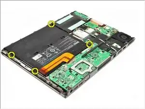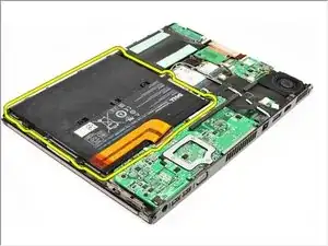 Поднимите черный зажим кабеля, чтобы освободить кабель батареи от разъёма на материнской плате и отключите кабель батареи.