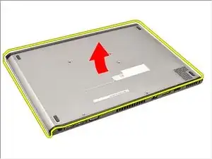 Сдвиньте крышку основания к передней части компьютера. Поднимите её вверх и удалите от компьютера.