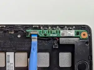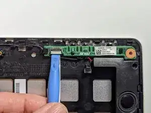 С помощью лопатки поднимите разъём, соединяющий аккумулятор с материнской платой.
