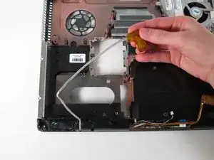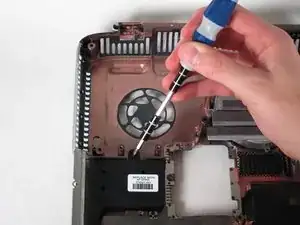 Открутите два крестообразных винта Philips 3 мм в отсеке оптического привода.