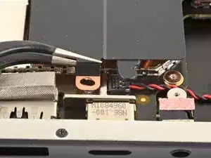 Тепловая трубка выступает над разъёмом левого динамика и её потребуется немного отвести в сторону, чтобы разъём можно было отсоединить.