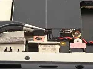 Используйте отвертку Torx T3, чтобы выкрутить винт 3 мм, закрепляющий левую сторону радиатора, рядом с разъёмом левого динамика.