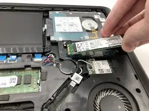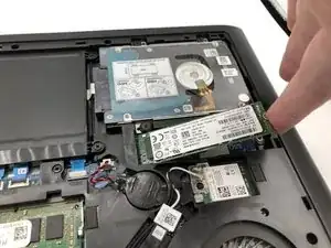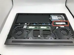Найдите накопитель M.2 справа от аккумулятора, под жестким диском.