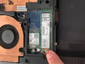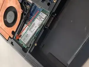 Удалите винт Phillips, удерживающий M.2 SSD на месте. Конец устройства поднимется немного.