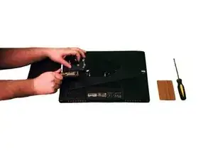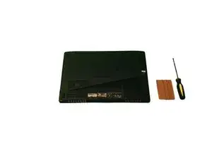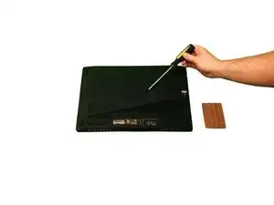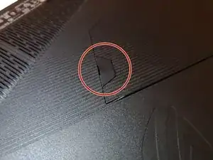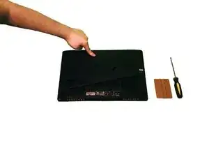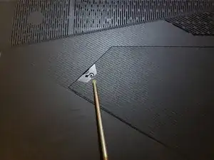 Используя крестовую отвертку Phillips #0, выкрутите один винт длиной 2 мм, который фиксирует крышку отсека на нижней панели ноутбука.