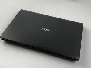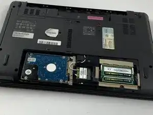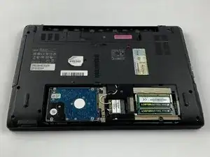 Переверните ноутбук так, чтобы задняя панель была сверху.