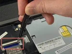 С помощью пинцета сдвиньте язычок вниз. Это освободит разъём, который можно аккуратно вынуть из гнезда.