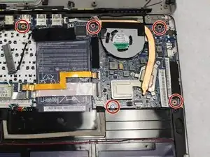 Удалите 5 винтов PH0 длиной 5 мм, фиксирующих материнскую плату.