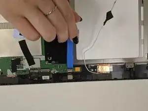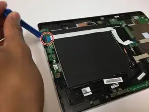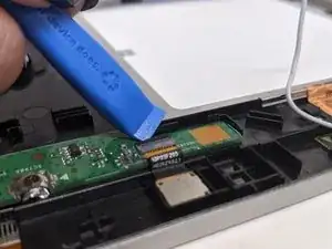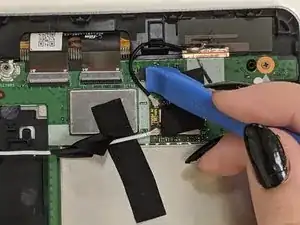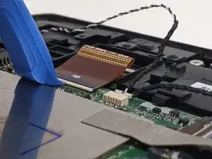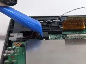 Снимите кабель зарядного порта с материнской платы с помощью лопаточки. Удаляйте их так же, как и другие кабели.