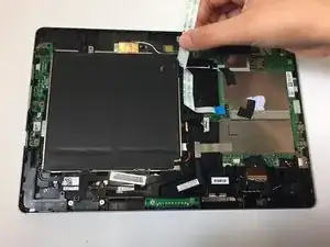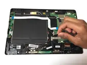 Аккуратно отсоедините ленточный кабель от батареи.