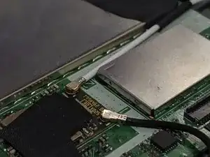 Снимите кусок тонкой черной ленты, прикреплённой к плате рядом с кнопкой питания.