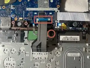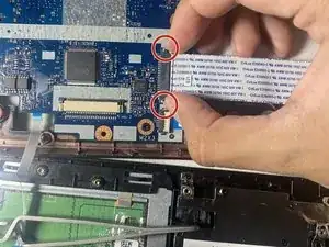 Отсоедините два компонента, которые подключены к материнской плате и клавиатуре.