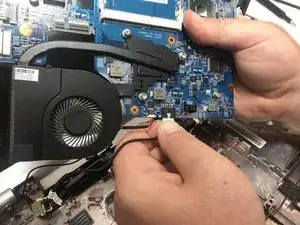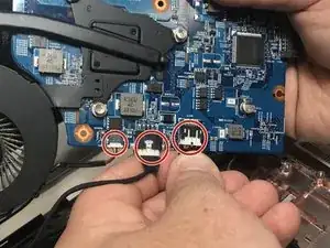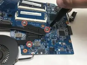 Используйте крестовую отвёртку #0, чтобы вывернуть винт 2.5 x 5 мм, прикреплённый к материнской плате.