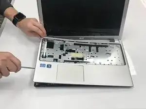 Защёлкните лопаткой по шву между клавиатурой и корпусом ноутбука, чтобы снять клавиатуру.