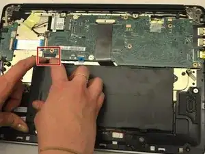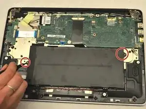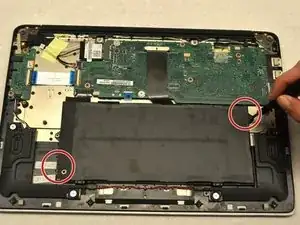 Удалите два винта JIS №0, соединяющих аккумулятор с остальной частью ноутбука.