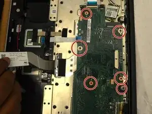 Удалите семь винтов JIS №0 длиной 4 мм, фиксирующих материнскую плату.