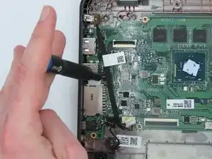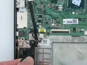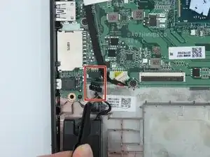 С помощью пинцета аккуратно отсоедините кабель динамика от материнской платы.