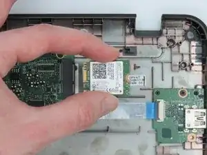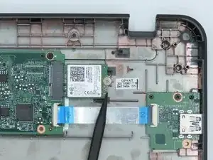Выверните один винт 5 мм, удерживающий модуль беспроводной сети, с помощью отвёртки JIS #00.